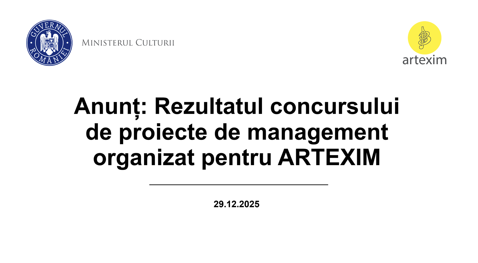 Secretariatul comisiei de concurs anunţă, conform prevederilor Regulamentului de organizare şi desfăşurare a concursului de proiecte de management organizat pentruARTEXIM, aprobat prin O.M.C. nr. 3351/2025,rezultatul final al concursului: